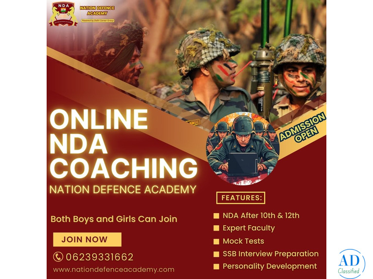 Join Nation Defence Academy for the best NDA Online Coaching and achieve your dream of joining the Indian Armed Forces. Our live interactive classes, expert faculty, and structured study material help you prepare effectively from home. Get regular doubt sessions, mock tests, and SSB guidance for complete preparation. Whether after 10th or 12th, our online NDA program ensures disciplined learning and top results. Enroll today with the trusted name in defence exam preparation. Start your NDA journey online with Nation Defence Academy and secure your future as a proud officer in the Indian Armed Forces.