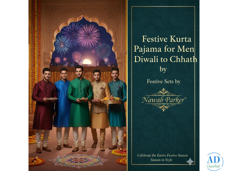 Celebrate Diwali, Bhai Dooj, and Chhath Puja in style with Nawab Parker’s premium collection of kurta pajama for men – crafted to suit every festival this October. Whether you're looking for a statement kurta for Diwali men, a subtle kurta set for Bhai Dooj, or a traditional kurta for Chhath Puja, our festive edit has everything you need.