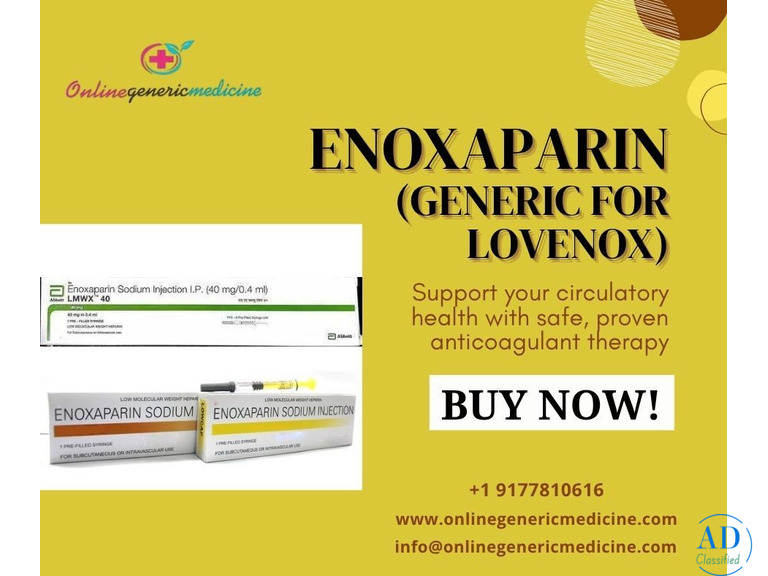 Enoxaparin, also known as Enoxaparin Sodium or Lovenox, is a reliable anticoagulant used to prevent and treat blood clots. Learn about enoxaparin injection, dosage guidelines, and potential enoxaparin side effects to ensure safe and effective treatment. This medication is also available as a generic Lovenox option, offering affordability without compromising quality. Get professional guidance and order Enoxaparin Sodium Injection online with confidence and convenience at OnlineGenericMedicine. Order Now!