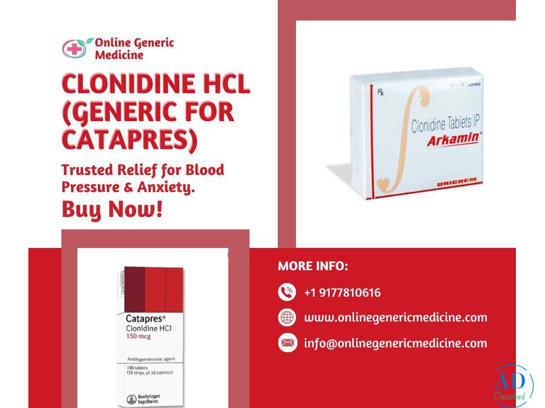 Purchase Clonidine (Catapres) safely online at OnlineGenericMedicine. Trusted Clonidine HCl medication for anxiety, blood pressure management, and other approved uses. Learn about Clonidine side effects, Catapres generic options, and proper usage. Reliable, affordable, and convenient access to quality Clonidine treatment.