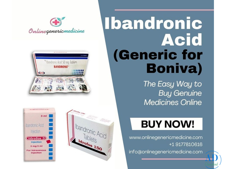 Get Ibandronic Acid, the trusted Boniva generic, at OnlineGenericMedicine for effective osteoporosis care. This medication helps strengthen bones, prevent fractures, and support long-term bone health in postmenopausal women. Trusted by healthcare professionals, Ibandronic Acid (Boniva) offers reliable treatment with convenient online ordering. Learn about proper usage and potential side effects to stay informed. Order now from OnlineGenericMedicine for safe, affordable, and fast delivery, and take a step toward healthier, stronger bones today.
