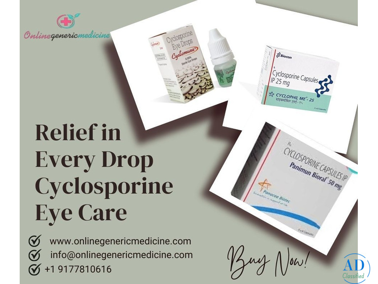 Order Cyclosporine online at OnlineGenericMedicine for trusted and affordable treatment options. We provide Cyclosporine eye drops, Cequa, and Neoral medication for effective immune and eye care management. Cyclosporine is widely used for dry eyes, organ transplant recovery, and autoimmune conditions, offering reliable relief under medical supervision. Learn about Cyclosporine side effects, dosage guidance, and the benefits of Neoral and Cequa before use. OnlineGenericMedicine ensures safe, secure, and convenient access to authentic Cyclosporine products, delivered with care. Choose quality Cyclosporine tablets, eye drops, and solutions to manage your health needs confidently with trusted service at OnlineGenericMedicine.