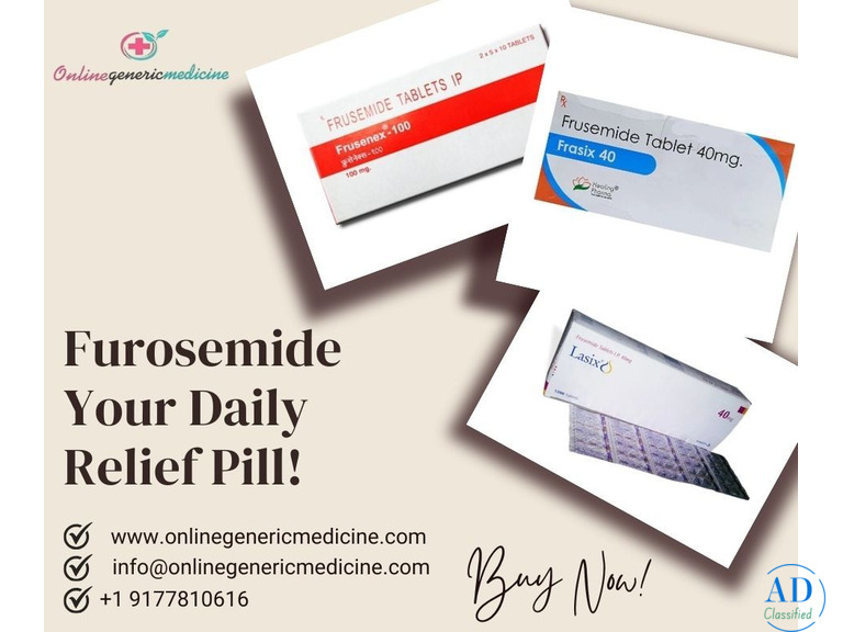 Order Furosemide tablets, the trusted Lasix generic, at OnlineGenericMedicine. Learn about furosemide uses, furosemide dosage, and important furosemide side effects before use. Lasix medication, also known as the Lasix water pill, helps manage fluid retention and swelling effectively. Discover the benefits and risks, including lasix side effects, while choosing the right treatment. Shop affordable Furosemide online at OnlineGenericMedicine for safe, reliable, and effective fluid management with trusted Lasix tablets. Order Now!