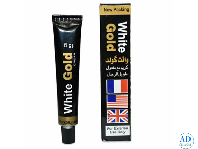 White Gold Cream is a skin whitening and beauty cream formulated to lighten dark spots, freckles, and pigmentation. It is enriched with papaya extract and natural brightening agents that help exfoliate dead skin cells, improve skin tone, and give a radiant glow. Some versions also contain fine gold particles to enhance luminosity.