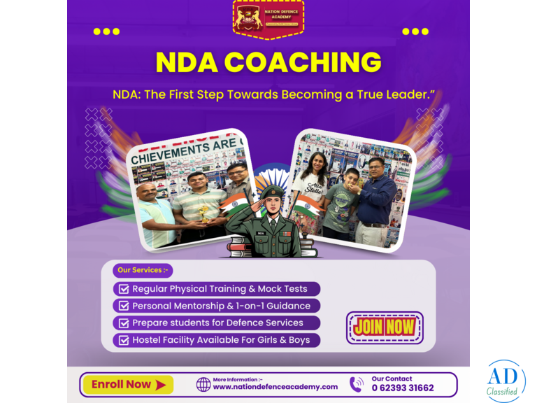 - NDA Schooling Program After 10Th In PuneCheck with sellerTutoring - Private Lessons Pune (Maharashtra) 2025/10/03Join Nation Defence Academy’s specialized NDA Schooling Program after 10th in Pune and start your journey towards a career in the armed forces. Our program is designed to integrate academic studies with NDA-oriented preparation, ensuring students...