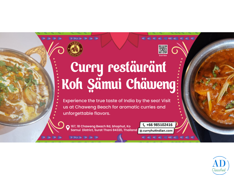 - Authentic Indian Restaurant at Chaweng Beach – Curry Hut Koh Samui400.00 ฿Restaurant - Food Service Chaweng Beach (Surat Thani) 2025/10/09Enjoy the real taste of India at Curry Hut Indian Restaurant, a top-rated dining spot on Chaweng Beach Road, Koh Samui. We serve a variety of authentic North Indian food, including Butter Chicken, Paneer Butter Masala, Tandoori Chicken, and flavorful...