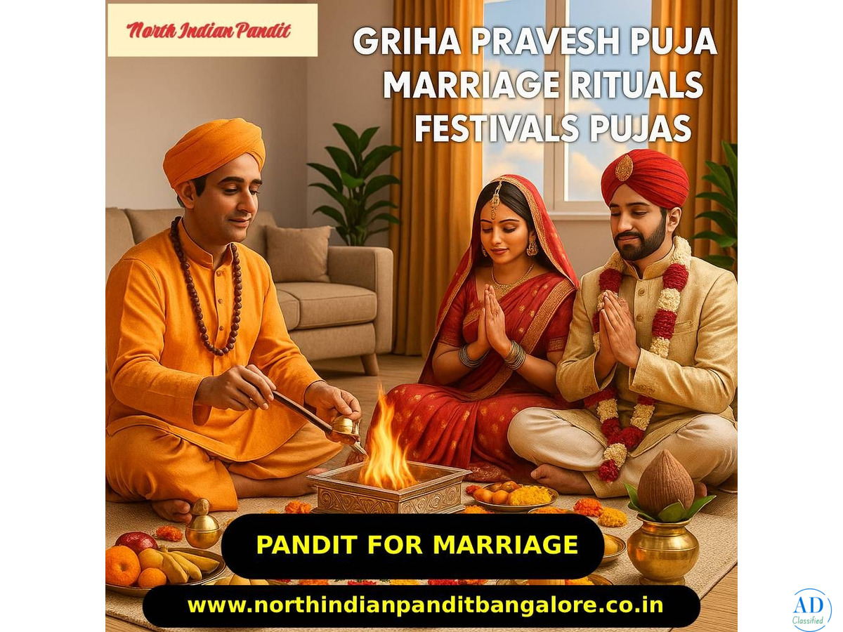 Hire North Indian Pandit for Marriage in Bangalore – Perform Vivah Sanskar with authentic Vedic rituals, Muhurat & divine blessings. Book now!