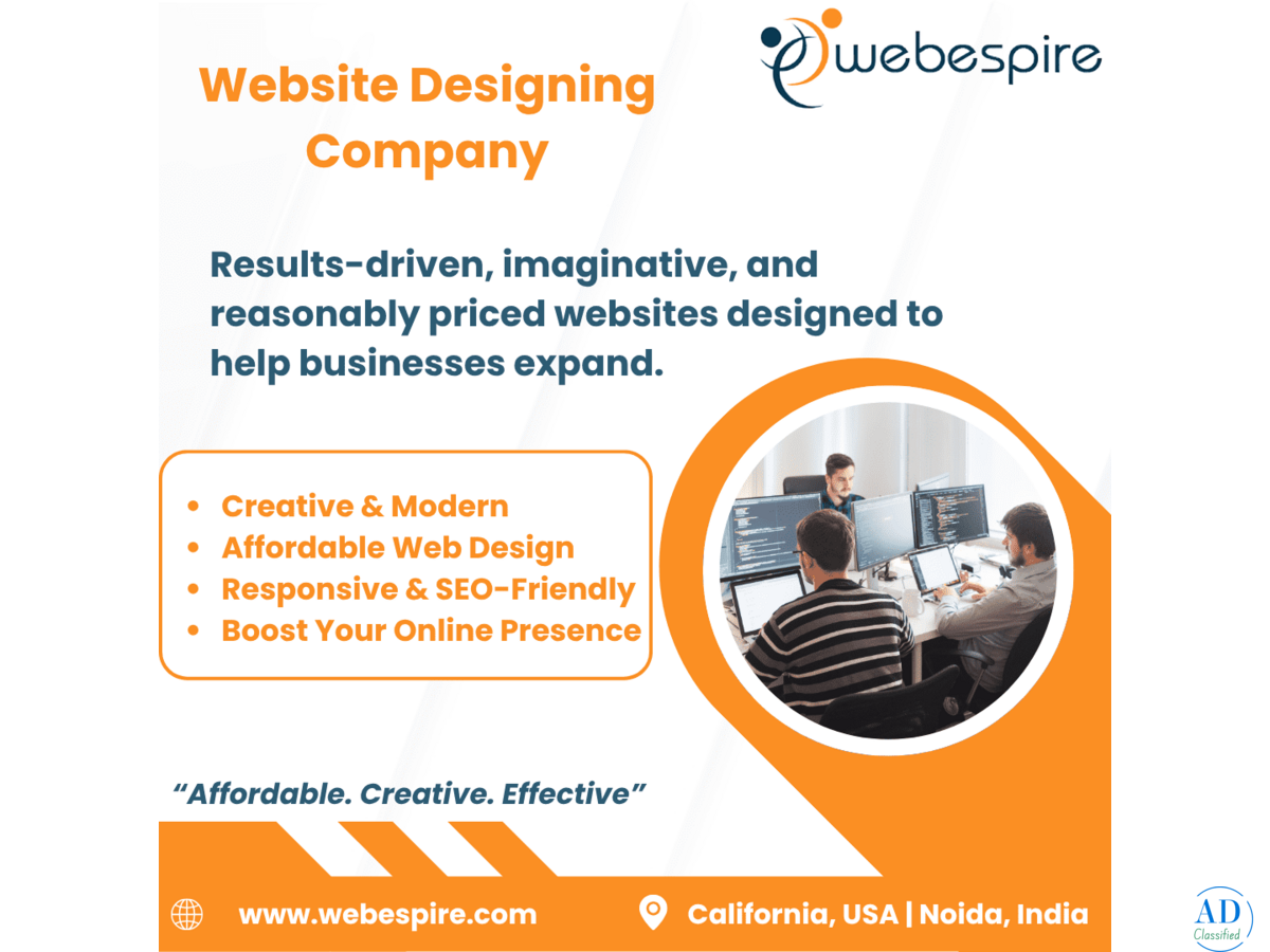 A top web design company in California, USA, and Noida, India, Webespire Consulting provides reasonably priced web design packages for startups, SMEs, and large corporations. As a reputable web design firm in California, USA, and Noida, India, we create innovative, user-friendly, and search engine optimization-friendly websites that improve user experience and bolster your online visibility. Results-driven solutions, performance, and innovation are the main priorities of our website design company. Webespire Consulting guarantees quality and cost-effectiveness in every project, whether you require a custom web application, corporate website, or eCommerce site.
