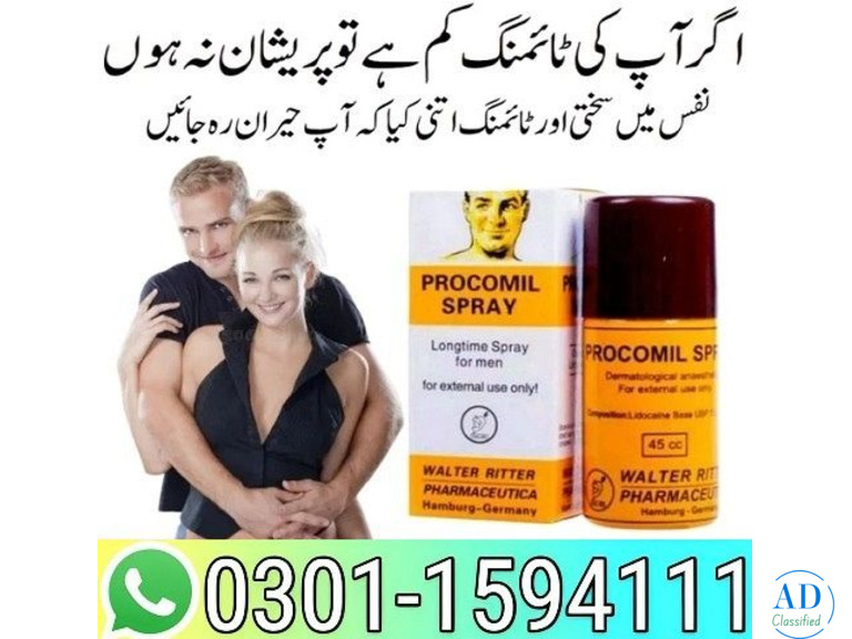 - Procomil Delay Spray In Pakistan ! 03025023431 ! Order Now1750.00 €Animals les Escaldes (Escaldes-Engordany) 2025/10/15Procomil Delay Spray 45cc In Pakistan | | Buy Now Procomil Delay Spray 45cc is a topical anesthetic designed to help men prolong sexual intercourse by delaying ejaculation. It achieves this by temporarily desensitizing the penile skin, thereby red...
