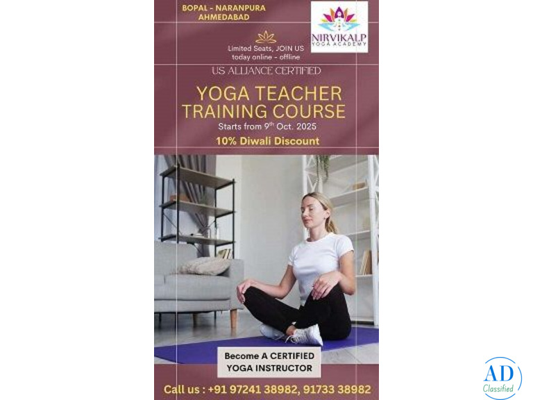 - Nirvikalp Yoga Academy | Personal Yoga Classes at Home1.00 ₹Other Classes Ahmedabad (Gujarat) 2025/09/18Personal Yoga Classes at Home . At Nirvikalp Yoga Academy, we understand that yoga is not just a physical practice; it is a profound science of consciousness that connects the body, mind, and spirit. Our Teacher Training Course is built on the princi...