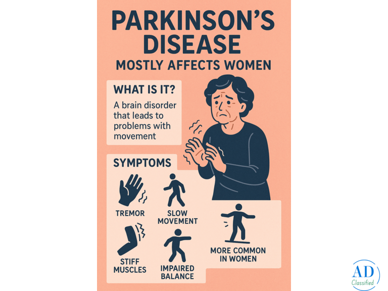 Parkinson Disease its a kind of neurogenrative Disrodeer which happening by mostly in women the reason of Hormonal influence, its Symptoms are we feel tremor and Stiffness, and its causes by its cause by Domapin loss,for parkinson treatment neurologist also suggest some Medication like Levodopa, Which help in this problem but without neurologist consult don’t take any medication, its Give any harm to your health.