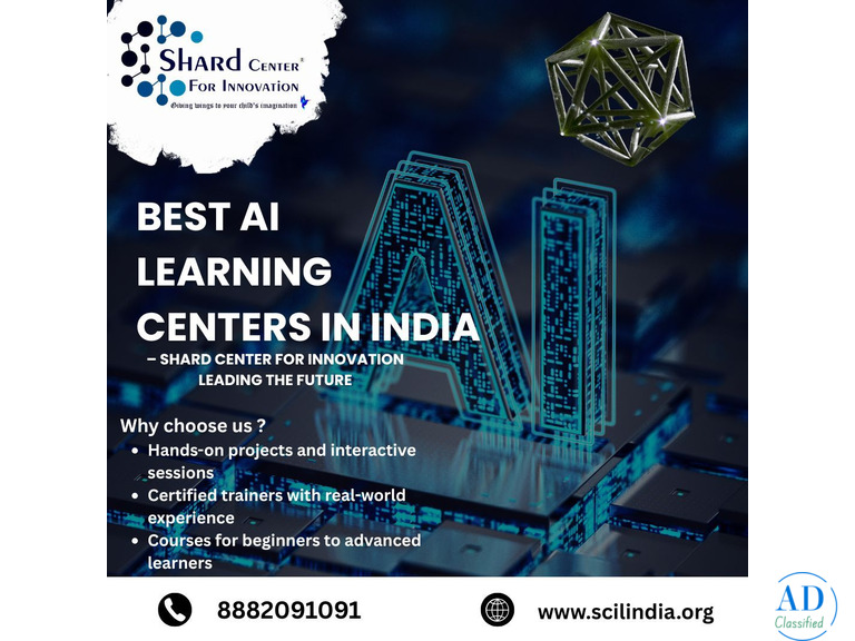 "Explore the Best AI Learning Centers in India, with the Shard Center for Innovation at the forefront of transformative education. Our programs in Artificial Intelligence, Machine Learning, and Robotics are designed to inspire creativity, critical thinking, and real-world problem-solving. At Shard Center for Innovation, students experience hands-on learning through advanced labs, guided mentorship, and project-based training — preparing them to thrive in the AI-driven future.