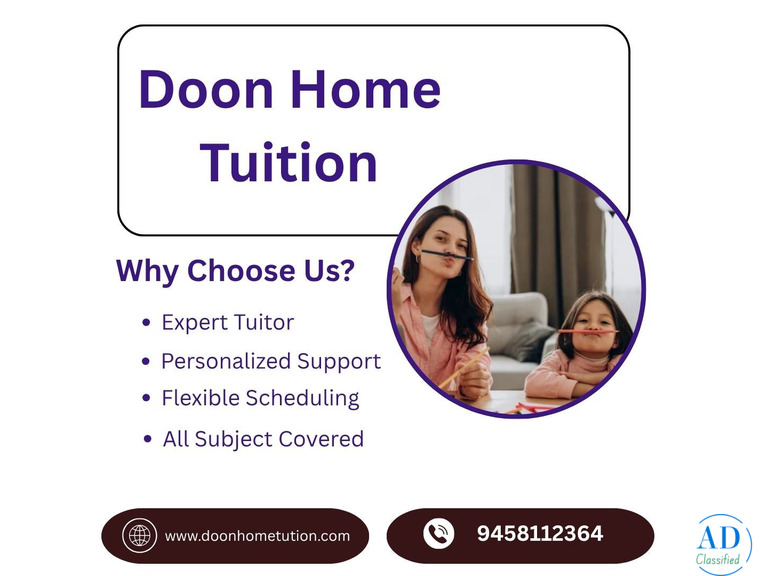 Why Choose Doon Home Tuition for Quality Learning and Tutor Jobs in Dehradun?FreeTutoring - Private Lessons Dehra Dūn (Uttarakhand) 2025/10/17Beyond Dehradun, Doon Home Tuition caters to students in surrounding regions, notably offering trusted Home tutor in Rishikesh services. This expansion provides a vital resource for students in smaller towns and rural areas, ensuring access to qualit...