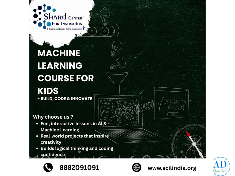 "Unlock your child’s potential with our Machine Learning Course for Kids, designed to make AI simple, fun, and practical. Through our AI Machine Learning Program for Kids, students learn how computers make decisions, recognize patterns, and solve problems creatively. This hands-on course builds a strong foundation in coding, logic, and artificial intelligence — preparing kids to become future-ready innovators.